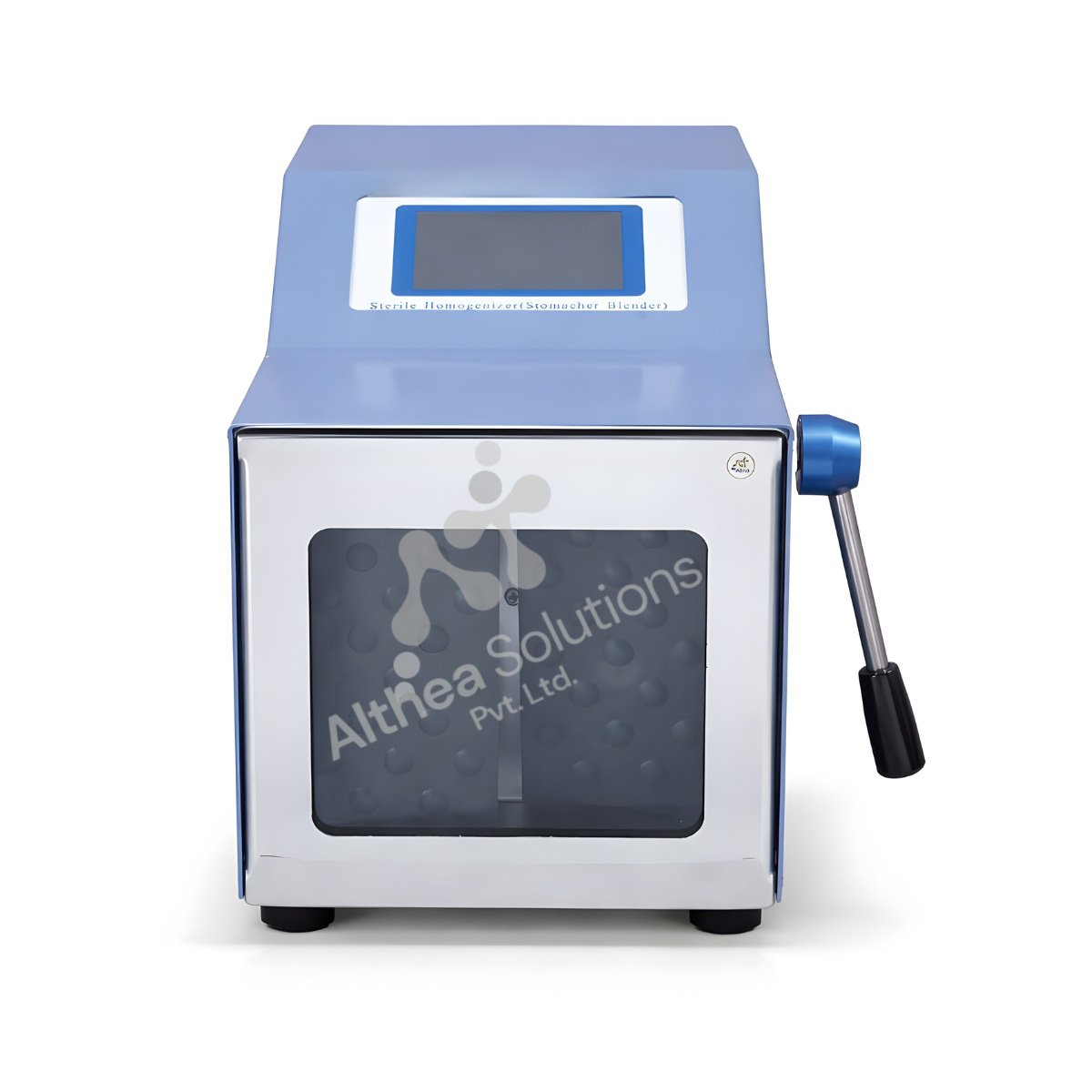 Althea Solutions introduces the Stomacher Blender, a robust and precision-engineered paddle-type homogenizer specifically designed for the sterile, uniform, and gentle blending of solid and semi-solid samples. Crafted with mirror-finish SS304 stainless steel and equipped with advanced microprocessor controls, our blenders ensure exceptional hygiene, durability, and repeatability across industries including food safety, pharmaceuticals, cosmetics, forensics, clinical diagnostics, veterinary medicine, and environmental testing.